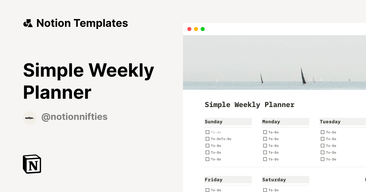 Locating complimentary Simple weekly planner template by notion nifties can be straightforward and convenient, you might use the web browser and visit sites that focus in supplying free resources. Be careful about the websites you check out, opt for trusted sites that offer premium, accurate files.